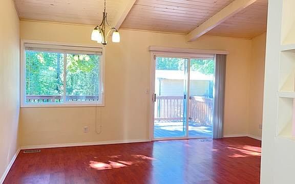 One level home on large lot. Walking distance to elementary school. Functional floor plan with open beam vaulted ceiling. Living room with fireplace. Updated vinyl windows. Huge yard and brand-new back deck. Walking trail steps away. Quiet location. Tenant pays all utilities. Landscaping included with rent. Pet friendly. 2 pet max. No aggressive breeds. $500 pet deposit per pet. $25 per month pet rent.