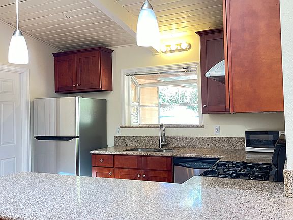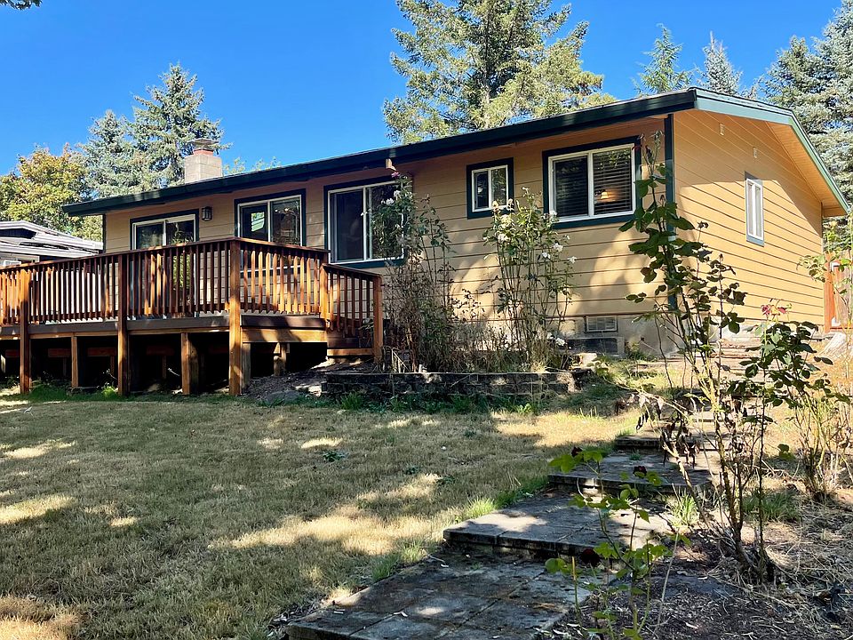One level home on a large lot. 2 bedrooms and 2 full bathrooms. Beautiful new deck overlook green space, plus variety fruits trees. Open Vaulted Ceiling, Living room with Fireplace. Walking distance to school, max and close to shopping ! Tenants pays uitilies and renter insurance. Landlord maintains landscaping.