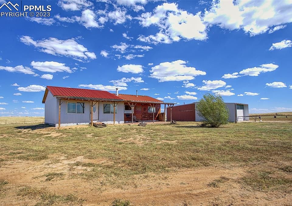 WELCOME TO THE WILD, WILD WEST! You said you wanted to get out of the city and away from the people...This is the perfect place for you! Less than 45 minutes to Colorado Springs and Hidden on an unmaintained dirt road, you will find this 40 acre homestead tucked away with its amazing views of the Rocky Mountains and Colorado Prairie! This homestead built in 2008 is just shy of 1300 sq feet with 3 bedrooms and 2 bathrooms. Updated kitchen opens into dining area with wood burning stove that heats the whole house! Basement access from back bedroom is where you will find the 340 gallon cistern fed by your 300 ft deep well. Huge Shop with concrete floors and 2 sections, fits an RV and offers a clean-out and water spigot. Pole Barn, 24 x 60 with open covered carport. Property is fenced and gated. Home is in need of some TLC. Schedule Today!