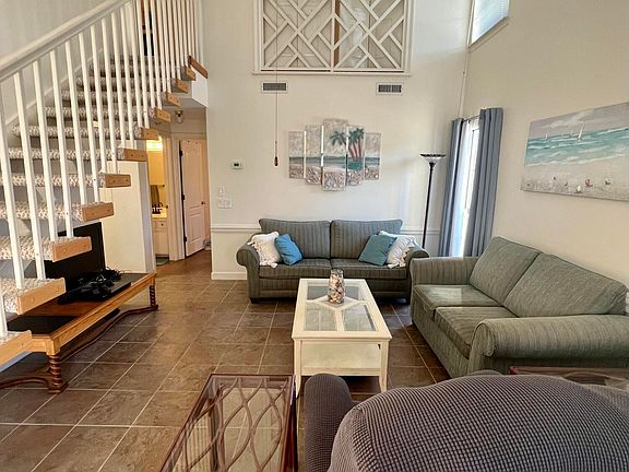 The downstairs living & dining area is open with natural light. The owner-suite upstairs has a great walk-in closet plus additional closet & full bath. There is also a bedroom on the main level with full bath, which some use as their primary br. The amenities include; 4 pools plus baby pool, hot tub, 18 hole mini-golf, tennis, pickle ball, basketball, shuffleboard, fitness center,etc. Measurements are approx. & should be verified.