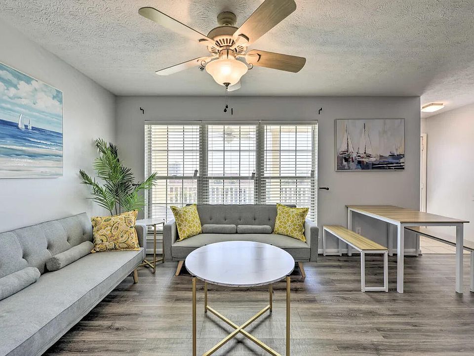 Vacation rental opportunity, this 2-bedroom, 1.5-bathroom condo is a perfect beach oasis in the highly sought-after Horizon South community of Panama City Beach, FL. With 1,246 square feet of thoughtfully designed living space, this Short-Term rental Zoned property presents an incredible opportunity for investors and vacation home seekers alike.Step inside and be greeted by an abundance of natural light that fills the spacious living room and kitchen area, creating a warm and inviting atmosphere. The condo boasts two balconies, one on each floor, providing the ideal spots to relax and enjoy the coastal breeze. From the second-floor balcony, catch a glimpse of the gulf view, adding a touch of tranquility to your everyday life.Recently renovated and fully furnished, this condo offers a turnkey solution for your vacation rental. With the convenience of a washer/dryer included, your daily tasks are made effortless. Horizon South is renowned for its highly sought-after rental locations, offering a wealth of amenities such as pools, tennis courts, shuffleboard, a gated community, and direct beach access, ensuring endless hours of entertainment and relaxation for you and your guests. Nestled in the heart of Panama City Beach, this condo provides easy access to Pier Park, a vibrant hub of shopping, dining, and entertainment. Don't miss out on this exceptional opportunity to own a recently renovated, fully furnished 2-bedroom condo in the coveted Horizon South community. Whether you're seeking an investment property or a personal beach retreat, this condo exceeds expectations. Take advantage of this chance to embrace the idyllic Panama City Beach lifestyle and schedule your showing today! All informa