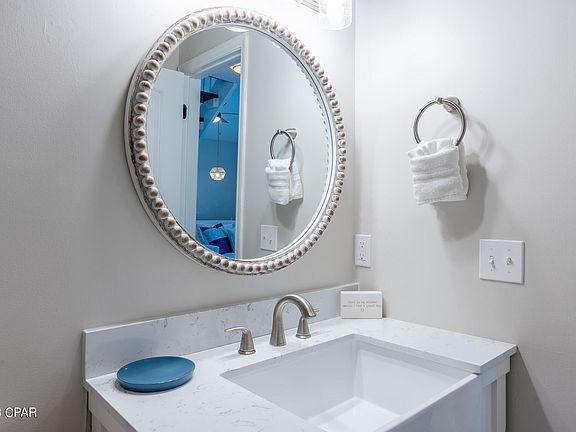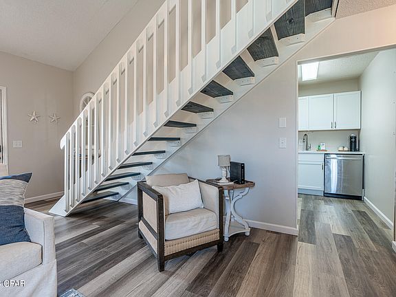 Rounding out the bottom floor you will find a generously sized primary bedroom with walk-in closet tucked to the back of the unit offering a peaceful setting after long days spent enjoying Panama City Beach. With ample room for a king bed and full bedroom furniture, this space offers plenty of comfort for someone looking to live here full-time or flexibility for a seating nook for a those looking to offer it as a rental.