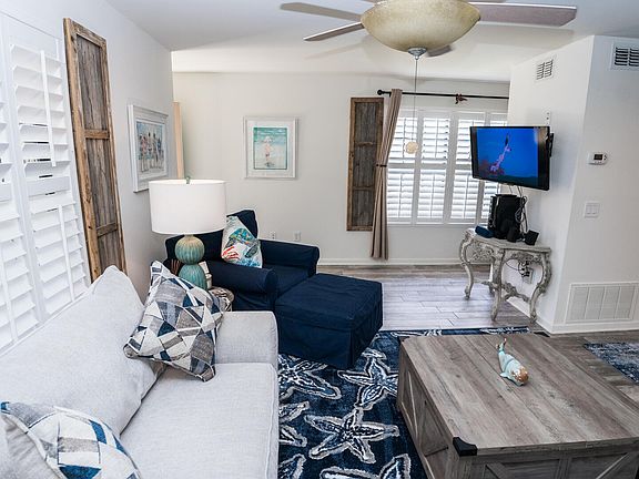 PRICED TO SELL! This stunning first-floor corner unit, located in the highly sought-after Horizon South community, is fully furnished with new furniture, flooring, a remodeled bathroom, plantation shutters, & outlets. In addition, the golf cart comes with the purchase of this unit, to allow you more opportunity to explore PCB! Just steps away from the beach and conveniently close to all amenities, this beautifully decorated unit presents an ideal investment opportunity or a perfect second home with endless activities to enjoy.