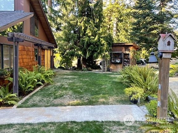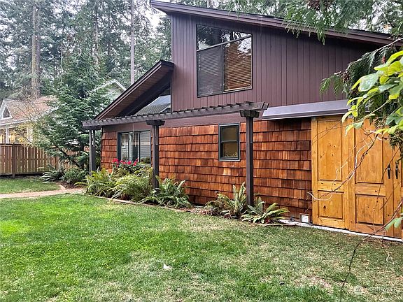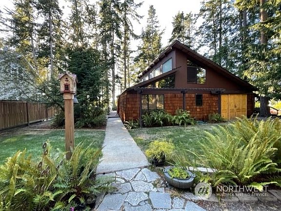 Fee Simple Ownership. No lease fees. When you wish upon a star, your wish comes true right here. 2 bedrooms, both Primary, plus loft a Northwest home & a whole lot more. La Conner retreat minutes to town, large spacious lot, beautiful stately Cedar & Fir trees. Off street parking & several RV locations near entrance. Views to Skagit Bay & North Whidbey Island, our home has 2 large sliding doors with easy access to outside entertainment. Inside, come enjoy the new free-standing fireplace, cozy up in the living room, enjoy a fine dining experience, kitchen just steps away & always fun with company. Main level bedroom & full bath, Upstairs loft with Murphey Bed also serves as office area, & large Primary Bedroom, 3/4 bath & tiled large shower.