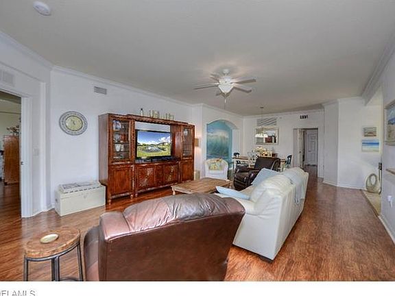 Gorgeous Unfurnished Coach Home on first floor. End unit, lake view with spectacular sunset views. 3BR 2BA 2 car attached garage, large screened lanai. All floors are tile or laminate. Crown molding, split bedroom floor plan, large master suite and bath with walk-in closets. Kitchen has stainless appliances, granite countertops, wood cabinets plus pantry. Impact glass windows. Great central location in Fort Myers close to shopping, beaches and schools. Tenant pays application & credit check fee. Tenant responsible for electric. Water, cable and internet included. NO SMOKING.