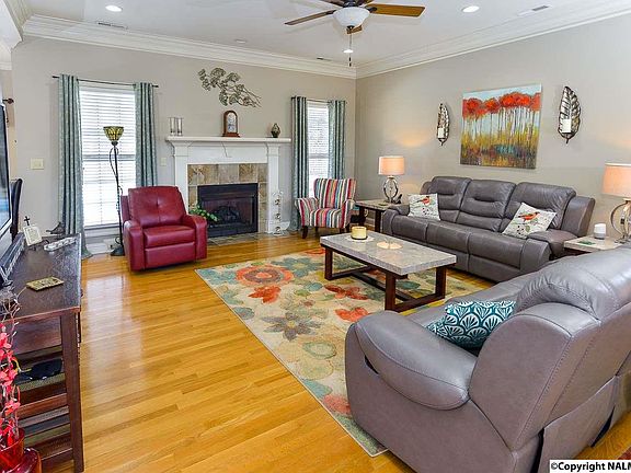 Just in time for summer! Enjoy this in ground pool in your all brick home. Three bedrooms on the main floor and upstairs bonus could be used as 4th bedroom. Hardwood flooring and tile in all areas except bedrooms and bonus. Wonderful crown molding throughout the entire home with high end light fixtures. Stainless steel appliances in the kitchen. Lots of attic storage accessed from upstairs half bath. Built in storm shelter is in the garage added in 2014. This home has high ceilings and lots of light. The back yard is privacy fenced and has a nice covered porch with ceiling fans. Association include fishing lakes and trails. HMS Home Warranty Included.