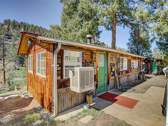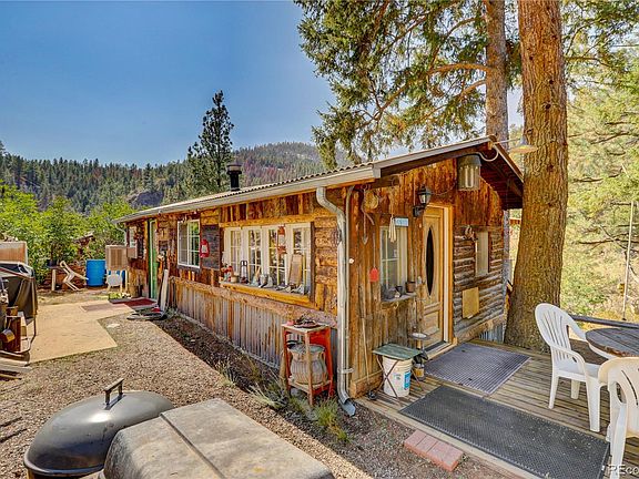 Do you love history, rustic cabins, & living a mountain lifestyle including quick access to fishing? Fall in love with this unique opportunity to own a historical, rustic cabin only a stone's throw away from the South Platte river! Surrounded by history, mountains, wildlife and river sounds you can relax on the river bank, on the covered deck or in the back yard. Outside the rustic charm encompasses the cabin with a made to look rustic metal roof, wood siding, antiques, newer windows, classic storm windows and so much more. Inside you will enjoy the antique wood stove, multiple cabinets, bright windows, new laminate flooring & covered porch. Cozy next to the pellet stove or enjoy summer evenings outdoors in the mountain fresh air. The cabin is a part of the National Historic Districts and comes with tons of history for you to enjoy and learn about. Enjoy the star filled night sky with the sounds of the river or spend your days fishing across the road and in your "back yard". South Platte river offers access to fishing, many hiking trails, or a short drive to many small historical towns including Pine Groove. Located on a county maintained & paved road this little piece of paradise is an ideal mountain getaway. Use as your full-time residence or as a part time retreat. Located across the road from the Platte River this rare cabin offers rustic features and is only 15 minutes to Conifer for shopping. Fully heated with a newer furnace, has a well, septic, and water softener system for peace of mind. The detached garage offers a great area for more storage, parking for your cars or storing your toys! Come check out this rare opportunity that you could call yours!