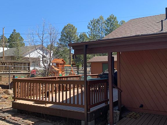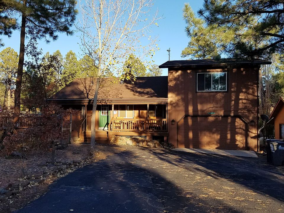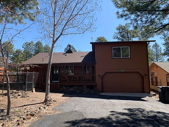 Great opportunity to live in the Pinewood Community of Munds Park for under $400k. Beautiful home on level street perfect of a primary or secondary home to escape the heat. NO HOA! Amazing wood panel ceilings! Cost effective wood pellet fireplace that heats the entire home. Loft upstairs that currently is being used as a large master bedroom. Dog run in the backyard and large patio for those amazing summer mornings!