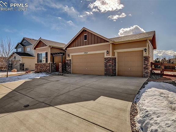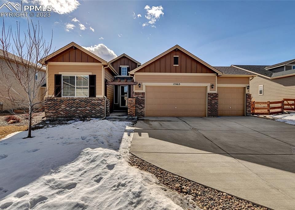 Beautiful ranch home on a 1/4 acre exterior lot in the Lake of the Rockies subdivision in Monument. Open, bright & spacious floor plan with lots of windows & natural light! This home has upgraded lighting throughout. There are 3 bedrooms all with walk-in closets, 3 bathrooms & over 3700 sq. ft. of living space. Oversized attached 3 car garage. Fabulous kitchen with 42 inch cabinets, beautiful granite countertops, stainless steel appliances, upgraded canned lighting, and custom glass tile backsplash. Large and fully landscaped gently sloping backyard with auto sprinklers. There is an oversized concrete patio with STUNNING brick gas fireplace is great for relaxing & entertaining. If you want to sit in the sun, part of the patio is not covered. Don't miss seeing this exceptional home! Just a quick walk to Monument lake or Historic Downtown Monument for concerts and Farmers Markets.