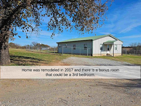 This homesite overlooks a rural setting that will be gorgeous spring thru early fall. It's nestled at the back of the 3.40 acres and is on a dead-end road. The home is reported as being constructed in 2005 and it was extensively remodeled in 2017. There is a bonus room that could be utilized as a 3rd bedroom. The primary bedroom is very large and has French doors to a covered patio. The home is also equipped with a manabloc plumbing system and water softener. The property has some pipe and barbed wire fencing and cyclone fencing around the house. The shop has space for 3 cars, additional workspace, and a long span of space that may have been used to park tractors and other heavy equipment. The storm cellar is 11 x 13. Formerly there was a mobile home on the property and the concrete slab still exist. This property is about two miles to Empire school and 4.5 miles to the Duncan by-pass. Listed by Susan Shaffer with Preferred Real Estate in Duncan. For a viewing, call Susan 580-251-0618.