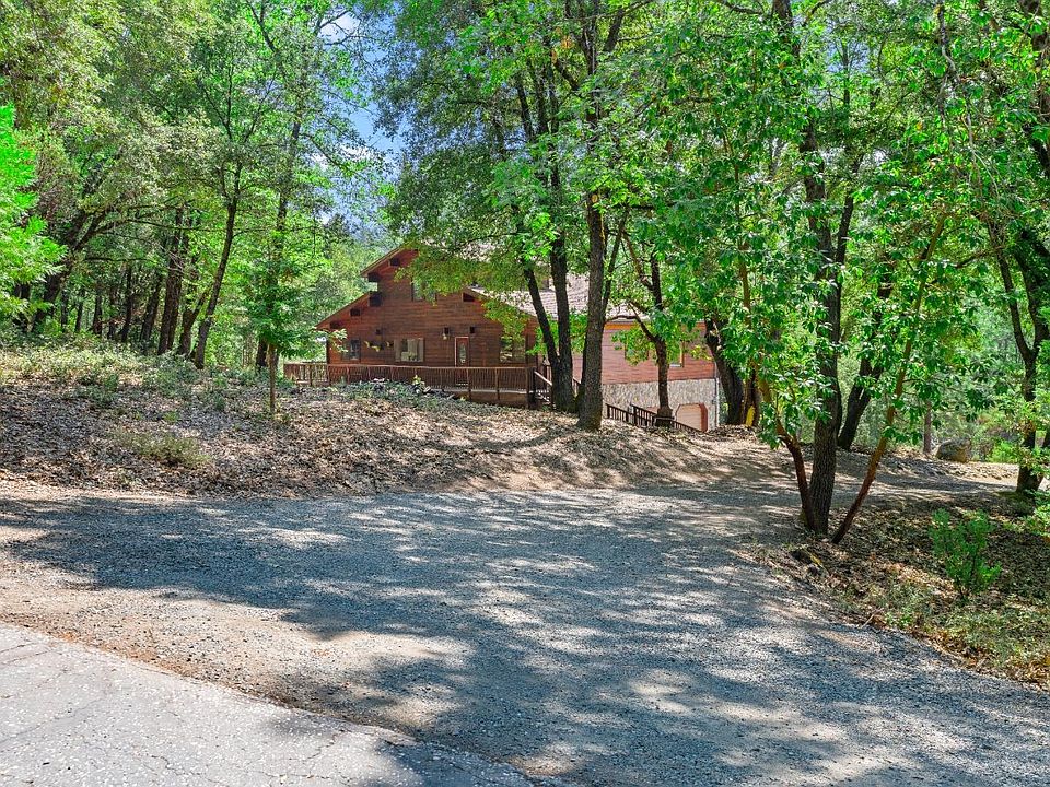 This solid Tahoe-style cedar log home located just 3.8 miles to downtown Nevada City boasts a brand-new 1,600 sft. redwood deck, cathedral wood ceilings with 2nd floor loft useful as office or 4th bedroom. The wall of rich wood windows brings in the forest while the efficient wood stove adds additional warmth on those chilly days. The living, dining room & 2 bedrooms open to the brand-new deck that surrounds the home providing large outdoor entertaining areas to enjoy the private setting. The primary bedroom & ensuite bath w/tub & shower & large walk-in closet is privately separated w/access to the deck for relaxing without a neighbor in sight. The Massive 1,392 sft. attached garage awaits all the toys & hobbies or additional living area w/ample natural light and exterior access. The 6.63 acres is gently sloping & offers a great south-facing garden spot w/selective clearing, featuring a 350 yr. old stately oak tree and impressive granite rock outcroppings complimenting the natural setting. 45yr. roof & strong well w/3,500 gal. underground water storage & personal fire hydrant. Defensible space cleared.