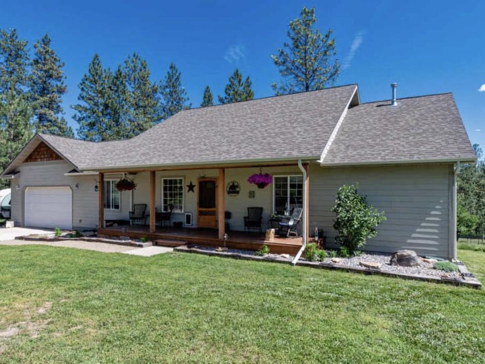 Lovely Home Located on a private setting with 2.5 acres surrounded by stunning Mountain & Meadow Views. This home has been nicely updated w/a new stone fireplace surround, fresh interior paint, & new flooring in Master, Hallways, Kitchen. Dining, Living room, & Laundry Room. With 3 beds/2.5 Baths you will enjoy main level living with laundry, a master suite w/master bath with double vanity. A wonderful open concept floor plan with tons of light & vaulted ceilings & gas fireplace. This kitchen is amazing with tons of cabinet space, a large breakfast island with pendant lighting above, a generous pantry, new tile backsplash, a large dining area with easy walk-out to the rear deck. The full walkout basement is framed & ready to offer additional room to grow with a little sweat equity.There is tons of storage space in this home. Aside from the captivating views, this home is privately situated, and partially fenced with a storage shed, small barn, chicken coup, fenced garden, private well, and a finished attached double car garage. Enjoy the sunsets from the covered front porch or relax on either the rear deck, or the patio as you walk out the lower level. Peaceful Country Living and the Frenchtown School District, all while being a quick hop on to the interstate and minutes to any of the Missoula Exits, to take you to the airport, shopping, dining, hospitals, banks, or outdoor adventures you may enjoy. The home has been outfitted with the latest smart home features and boasts full connectivity.
