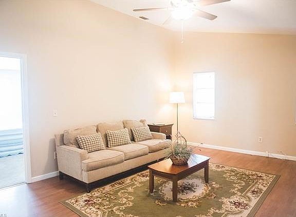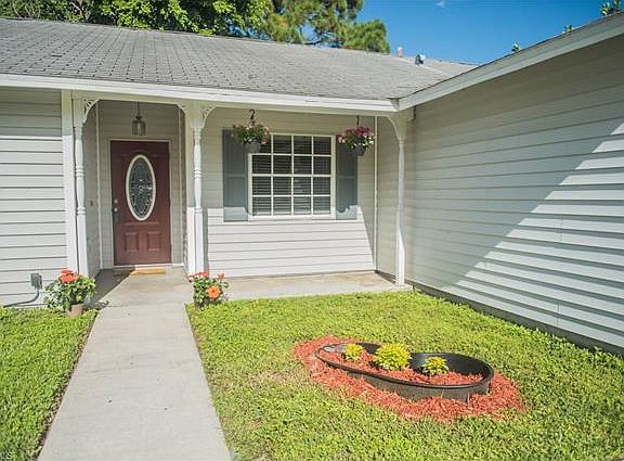 This charming 3 bedroom & 2 bathroom home in San Carlos Park/Three Oaks is a must see! As you enter, you'll notice the vaulted ceilings and plenty of natural light. The bathrooms are updated! The dining room overlooks the front porch & yard. This home has wood laminate flooring, tile, and brand new carpet in all of the bedrooms. The A/C system was replaced recently and there is also a new septic system & drain field. There is an indoor laundry room with a sink. The garage door is brand new (2017), and there is fresh paint throughout. The screened lanai overlooks the backyard with plenty of shade trees. There is also a shed for extra storage. The Seller will consider offering a ROOF CREDIT at Closing! This is a great home in a prime location - close to everything - Gulf Coast Town Center, RSW, FGCU, dining & shopping.