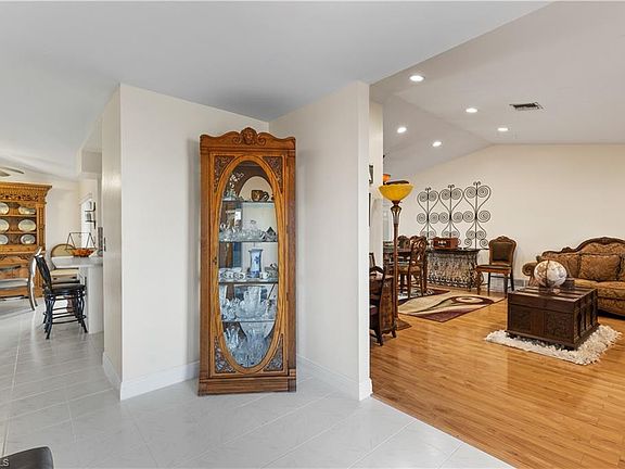 Beautifully maintained, open layout family home in the popular San Carlos Park area! Three spacious split bedrooms with fully air-conditioned walk-in closets. Master has french doors leading out to the lanai and bedroom carpet was replaced in 2019. Two full bathrooms. One bathroom provides access to the huge screened lanai and outdoor paver stone patio which accentuates the built-in fire pit and decorative fence. Oversized lot features peach and orange trees, RV pad and room for a pool! The bright and efficient kitchen has modern white cabinets, matching countertops & stainless steel black appliances. Laundry also includes more storage! This easy flow open layout provides a connection to the kitchen, great room, and family eating area while offering a bright and inviting space for entertaining friends and family. The dining area has glass sliders that provide effortless access to the lanai and patio. This home has everything! Close to schools, and neighborhood pool! Quiet neighborhood with easy access to 41/I-75, close to Alico Rd., Florida Gulf Coast University, and only minutes from beaches, Naples, and downtown Fort Myers! This awesome home won't last long.