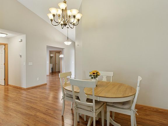 Open House cancelled - offer accepted. Hard to find one level living at an affordable price! Everything you need on the main floor with no interior stairs! Excellent condition with recent updates and an open, airy feeling with impressive vaulted ceilings and natural light. Enjoy the open floor plan in the main living spaces with good-sized dining area and living room featuring cozy gas fireplace-great for entertaining and everyday living. The inviting sunroom offers large windows overlooking the beautiful green space behind and provides access to the large patio - perfect for relaxing and entertaining! The well-designed kitchen offers ample counter and cabinet space, subway tile backsplash with decorative accent tiles above kitchen sink, under cabinet lighting, eat-in area, gorgeous wood floors (2020), and solar tube providing lots of natural light (approx. 2021). Spacious primary suite offers big walk-in closet, large window overlooking green space, and private full bath. The second bedroom is ideal for guests or could be a great home office, crafting/hobby room, or exercise area. The covered front porch provides a wonderful place to enjoy the outdoors and chat with friends & neighbors. Convenient main floor laundry room with handy sink, cabinets, and hanging space - washer & dryer are included. Attached garage with room for storage. Convenient location - short bike ride or drive to charming Downtown Prior Lake offering shopping, post office, dining, library, brewery, parks, trails, lakes & more! HOA allows pets-see HOA docs for more info. Move right in & enjoy! Quick close possible.