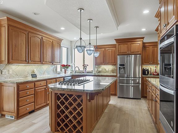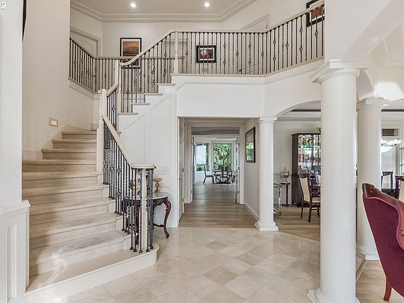 As you step inside this captivating grand formal entry you'll fall in love! High soaring ceilings to the beautiful marble floors! Gourmet kitchen w/new appliances, granite countertop, large island, family room w/custom built-ins. New floors on main, elegant formal living rm w/coved ceiling, marble surround fireplace & formal dining rm w/captivating VIEWS! Great add'l living on lower level w/media rm, game room + more. Idyllic backyard w/picturesque waterfall & landscaping.