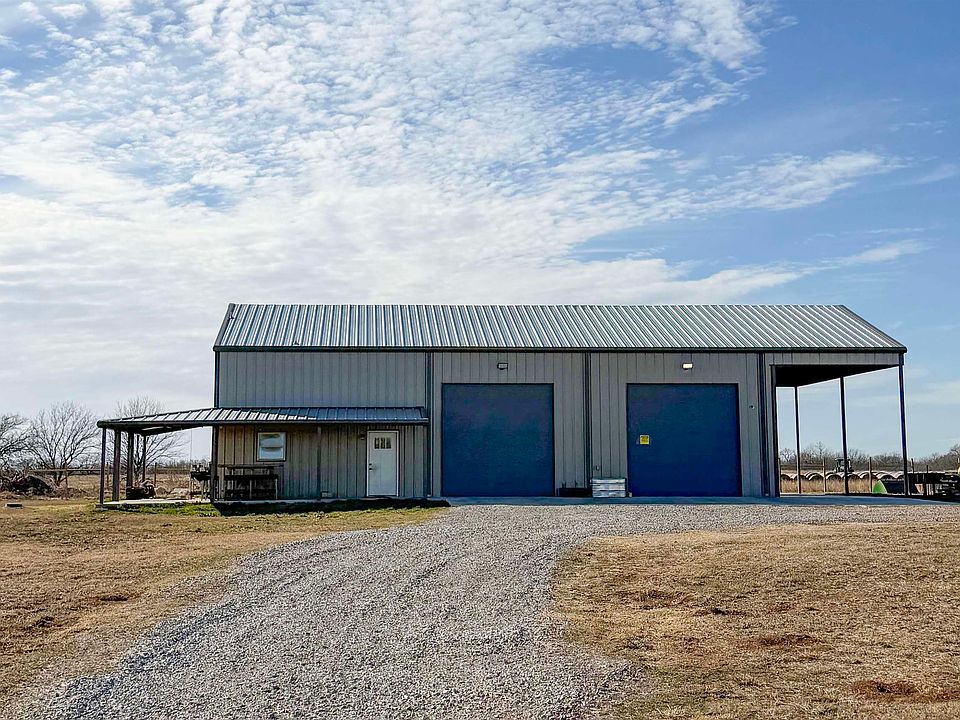 Versatile 60' x 40' building situated on 90 acres with pond, offering the perfect blend of living space, shop, and RV accommodations. The property features approximately 800 sq ft of comfortable living quarters with 2 bedrooms, 2 bathrooms, and an open kitchen/living area. An additional 1,600 sq ft shop includes two 12' overhead doors with 14' sidewalls-ideal for equipment, vehicles, or business use. An unfinished loft in the garage that adds countless opportunities. RV covered parking with full hookups adds exceptional convenience. A rare opportunity for those seeking space, functionality, and wide-open land.