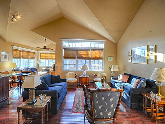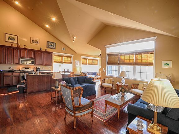 This beautiful highly upgraded home is perfectly located on the interior of the amenity filled Stonegate West community. Emphasis on the word "Community"! This home has one of the largest floor plans and is designed for SINGLE LEVEL LIVING while still incorporating 4 bedrooms overall. The Master Bedroom, second bedroom or office, 2nd full bath, laundry and spacious open living areas with vaulted ceilings are all on the first floor! One of my favorite features is the pretty open year-round sunroom exiting to a large raised deck, just begging to entertain. No steps to climb! Your guests can stay upstairs in their own private 2-bedroom suite with full bath, and the finished English basement adds bright entertaining areas including a kitchenette bar, another bedroom or office, full bath, workshop, and lots of storage. Your new home has a ton of closet space in general, and includes his-and-her master closets and finished upstairs seasonal closet. No worries about the mechanicals because you have a newer Furnace and A/C with seasonal built in whole-house Humidifier and Dehumidifier (rare) and a UV filter to sanitize the air! There is also a new water heater, and the roof was replaced only 4 years ago. The open kitchen also has many newer appliances. Stonegate West (SGW) is really a fantastic subdivision targeting 55+ adults. But anyone is welcome and many younger families live here too. SGW consists of single family and attached homes, with a lovely clubhouse, outdoor pool, exercise room, walking trails, and most importantly A LOT of activities and opportunities (if you so choose) to meet and socialize with neighbors young and older. The association is well managed and fiscally strong with a low monthly assessment. Snow removal and Yard maintenance is included for all residents.