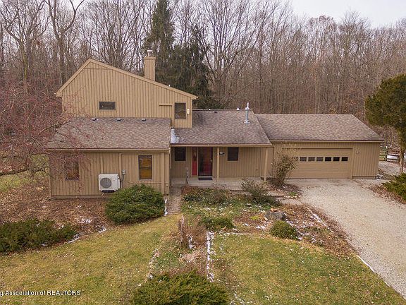 Amazing offering. Fabulous California contemporary nestled on 19.98 acres of property. Enjoy the walking trails, 3+ loops. 30X40 barn with loft. 4 stalls, 10X10 tack room. Fencing. Secluded down a winding driveway. Southern exposure. Fabulous views in every direction. Enjoy nature at its best. Quarry tiled floors in the great room/hearth room with a wood stove. Charming study nitch. Stunning cherry kitchen offering stainless steel appliances including a 5-burner gas range, tiled back splash, pretty accent pattern tiled flooring, (the sink faces beautiful nature views) and eating bar. 1st floor master with hardwood floors and tiled shower. The 2nd floor offers 2 additional bedrooms, a loft, floor to ceiling windows, and a full bath. Convenient main floor laundry/mudroom. Over-sized screened porch with cathedral ceilings and outside access. 2 mini split air/heat exchanger units, one up and one down. Beautiful flower gardens. Over 25K in recent improvements.
