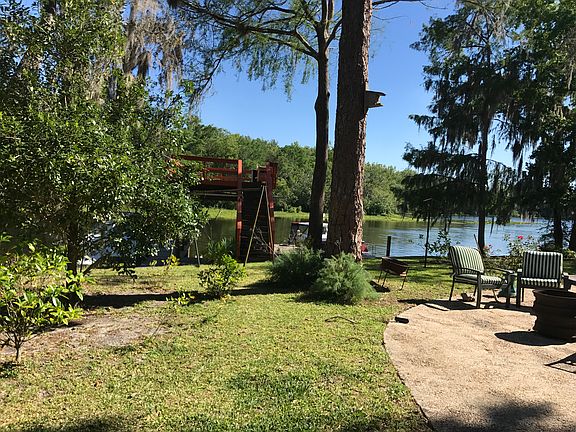 Do not miss this opportunity for over 1 acre of riverfront with a spacious and open 3 bedroom, 2 bath home perched high on a bluff with spectacular views of the water and the natural shoreline beyond. BONUS: 2000 sq. ft. custom built garage/workshop is commercial grade and includes a covered RV or boat bay. Beautiful deep water dock with awesome second story observation patio above covered lift plus two deep water slips to accommodate large yachts. This dock is just 5 years old and was constructedalong with 100' of vertical seawall.