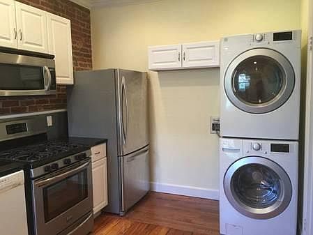 Available July 1st! 2 Bedroom: 2 Bathrooms: DESCRIPTION - Sunny, naturally, well-lit, spacious, all freshly painted 2 bedroom on Commonwealth Avenue at Wallingford/Green B-Line stop of the Aberdeen Historic District section of Brighton. Unrestricted parking out front on (carriage road). Individual security system, hard-wired fire and carbon monoxide system, heat and hot water included, cable and Internet ready. The classy, state of the art kitchen has granite countertop and stainless backsplash with dining area, and new washer/dryer. Master bath with modern, exposed brick has an extra large tiled shower. The FULL, guest bath is brightly painted, tiled, and with extra vanity storage!