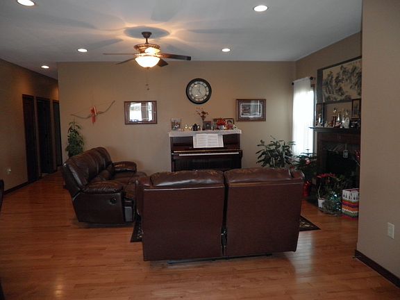 This is a gorgeous home with a great open floor plan. The living room has a beautiful fireplace and is open to a roomy kitchen with a 4-season room attached. The entire home has beautiful woodwork and warm paint colors. The master bedroom has a door to the outside as well as a roomy master bath. A triple-stall garage and huge finished basement sets this home apart from others. This is a must-see!