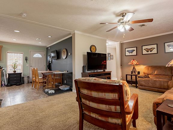 Want off the grid? This property is self-sufficient, on 7.5 acres - electric, septic and a private well w/manufactured home tied to a permanent foundation. Property has fruit trees, and plenty of room to garden. All you need is solar to make this completely self-sustaining. Hot tub is included with full-price offer! 3 bedroom (1 non-conforming with no closet, but has a window), 2 bathroom, 1500 SF. Very private property; 3.5 miles west of Pleasant Hope. Property has 2 additional metal buildings and chicken house: Metal building #1: 30' X 48' with 2 - 10' roll-up doors, a walk through door, 4 windows and an addition on the west end. A separate room has been built inside, with insulated walls, so you could make this into a shop house. This building has a matching 9' X 9' matching well house and chicken house, 13' X 20. Metal building #2: 31' X 59' with the north side open. Make sure to walk through the outbuildings! Home has tons of smart features. Owners have automatic blinds and smart thermostat that can be reinstalled. There are several cameras available at the barn so that you can monitor your property! The property is fenced w/barbed wire. There is a black piped fence with 2 gates across front of property. Cleared around the home, the property is surrounded by woods.