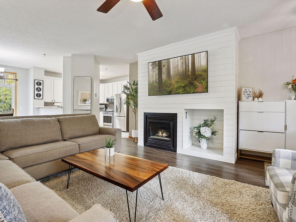 Welcome to our adorable townhouse. We have added some incredible updates such as: painted the kitchen cabinets, new countertops and hardware. We gave the fireplace front a new look with shiplap.