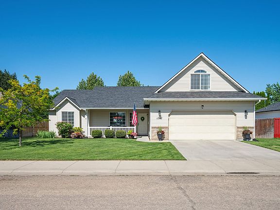 Back on market + Price Improvement! Buyer lost their financing, creating a second chance to make this exceptional Kuna home yours. Home originally went pending in just 24 hours! Seller offering $9,000 in assistance with full-price offer—use for a rate buydown. Home inspection and appraisal completed; inspection report available with accepted offer. Quick close possible! This beautifully maintained single-level home with bonus room features vaulted ceilings, split-bedroom layout, and 2023 stainless appliances—including refrigerator—and a deep farmhouse sink. Primary suite with en suite bath and walk-in closet. Updates: new water heater (2025), roof (2017), Nest, Ring doorbell, security system, garage opener (2022), HVAC serviced June 2025. Fully fenced yard, paved BBQ area, sprinklers, mature landscaping, oversized 2-car garage with storage. Near top-rated schools, walking paths, and low HOA with irrigation. 13-month home warranty included!