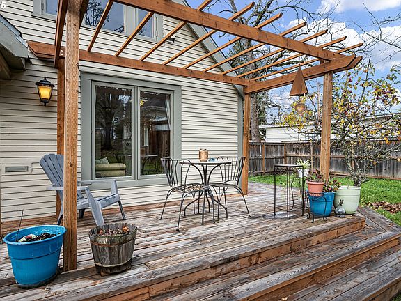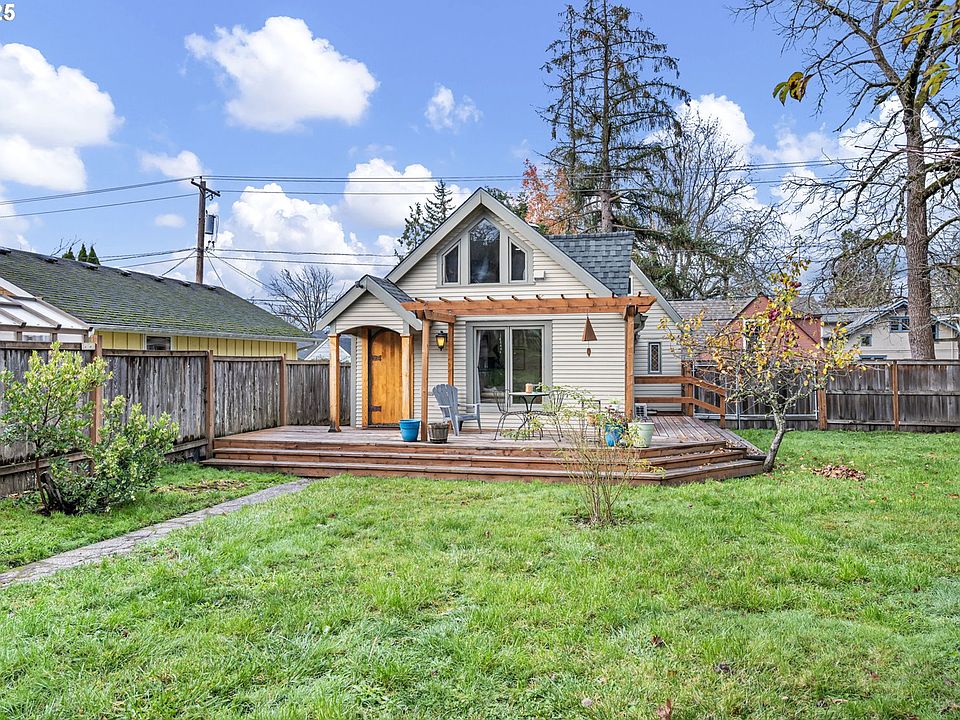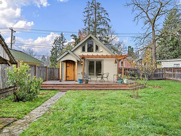 Absolutely charming University-area home with a separate studio loft apartment! This beautifully remodeled property has been thoughtfully updated throughout while preserving all the character and warmth of its era. As you enter through the front gate and follow the concrete path, you’ll be welcomed by a spacious yard with mature apple trees and a newer wraparound deck that enhances outdoor living on two sides of the home. Step inside through the distinctive round-top door and you’ll immediately notice the original fir floors—refinished and glowing with history. The main living area is bright and spacious, designed to make the most of every square foot with multiple entry points. The kitchen is a true highlight, featuring imported terracotta tile flooring, brand-new hickory cabinets, and stainless steel appliances. The updated bathroom offers tile flooring, a modern shower/tub combo, and a stylish vanity. Follow the spiral staircase to a versatile loft area—perfect for an office or cozy reading nook—and the upstairs bedroom, filled with natural light from double-pane windows. A stunning stained-glass window above the staircase adds a unique artistic focal point. The second unit is a fully independent studio loft apartment that has operated successfully as an Airbnb since 2017, generating approximately $70,000 over the past three years. It includes its own kitchenette, bathroom, living area, and bedroom, with new photos coming 12/17. With dedicated parking and a private entrance off Orchard Alley, this space can remain completely separate from the main home—ideal for rental income, guests, or multigenerational living. Both units have individual meters and have been thoughtfully updated and well maintained. This is a rare opportunity to own a charming home near the U of O with built-in income potential on your terms. Low taxes. A must-see!