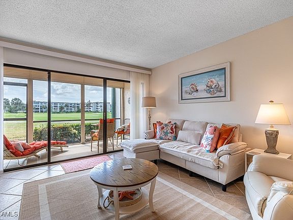 COME SEE THIS BEAUTIFUL WELL MAINTAINED CONDO!!! Desirable first floor 2 bedrooms 2 bath with spacious open floorplan has tons of natural light. Relax in the screened-in lanai overlooking the 7th green. This condo has an updated kitchen with brand new stainless-steel appliances, Tile flooring and updated switches throughout the unit. The primary bathroom has a walk-in shower and updated vanity. The unit has a full size side by side washer and dryer. A/C 2018 and Hot Water Heater 2020. This is a 55+ Gated Community that is peacefully set in the middle of everything there is to do in South Fort Myers. Close to RSW International Airport, and Punta Gorda Airport which offers you options for you to frequent this as your seasonal home or if you intend to live full time. Golfing is Bundled in your Fees for 2 Owners to Play as you Desire. Putting Green, Driving Range. 6 Tennis Courts, Pickleball, Bocce Ball or Shuffleboard. Many Cards and Game Groups, Planned lifestyle events and outings. Live Music events and Entertainment brought in for you and your guests. "Tee Room" Restaurant/Bar, Great Neighbors and Social Support. Close to shopping, restaurants, everything you need is here or just outside our gates. Condo fees cover all your amenities plus your internet/cable, water, sewer, trash removal, lawn maintenance, you pay your electricity. Great fun, friendly community!! You will love this community!