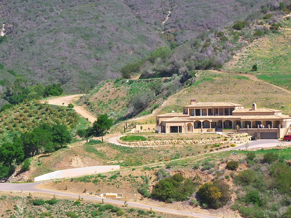 Perched above Santa Barbara and the glittering Pacific sits this newly constructed luxury Mediterranean style home on 160 enchanted South-facing acres. Voluminous social rooms with stunning mountain and water views from every room complement the gourmet chef's kitchen and large entertaining patio. The fabulous master suite occupies the entire second story with room for an office and more breathtaking views. Spacious 6,000+ square feet indoor area is enhanced with covered patios and a finished garage adding approximately another 4,000 square feet; all designed and built with attention to detail. Featuring commercial grade construction with fire proof insulated flexible concrete, steel framing and a seismically reinforced foundation, this home was engineered to withstand time and all the elements. Set in the San Marcos Pass, the gateway to Santa Ynez, the home is convenient to both the South Coast and North County. Two artesian wells provide plenty of water to this certified organic farm while a year-round creek meanders for a half-mile through this totally private enclave of natural splendor, networked with trails throughout.