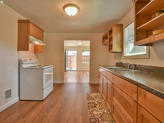 Charming cottage completely updated in convenient, close-in location. Beautiful interior with hardwood floors and interior laundry room. Spacious, easy care yard with deck and storage shed. Covered carport with garage door. Fully fenced, the property offers a remarkably private setting. Located just minutes to shopping, restaurants, bike path and U of O. Available now. Washer and dryer are included. No pets are allowed.