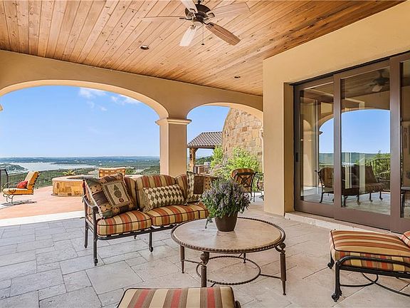 If you're looking for complete privacy, luxury and views, look no further! This hilltop haven in Jonestown, TX features 360-degree lake and hill country views. 4 bedrooms, 4 full baths and 2 half baths are located in the main house. The casita with its separate entrance adds an additional bedroom, bath and kitchenette. A lovely outdoor courtyard welcomes you into the home. Wolf 6 burner gas cooktop and griddle and Subzero refrigerator. This custom luxury property also includes warming drawer, 2 Asko dishwashers, beverage fridge and icemaker, walk thru pantry and prep station, exotic granite countertops, hammered copper vent hood, pot filler, and 2 copper sinks. Master wing outfitted with personal laundry room, separate entry and security system. Relax and take in the views from the exquisite master bath that includes marble bowl sinks mimicking the shape of freestanding tub. The shower features rain head and body jets. Nuvo Whole Home Audio System. Downstairs is an entertainers dream with game, media rooms and full bar that are steps away from the pool, spa and outdoor kitchen. Glass pocket doors slide into adjacent walls allowing continual flow from indoors to out. 2 covered seating options are complete with wall mounted televisions. Barely lived in and immaculately maintained with tons of attention to detail. Enjoy the outdoor oasis with a luxurious pool and spa, relax by one of the 3 fireplaces, full outdoor kitchen with everything needed for cooking and entertaining, outdoor TVs to watch the big game, breathtaking views from every angle.