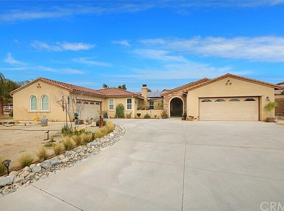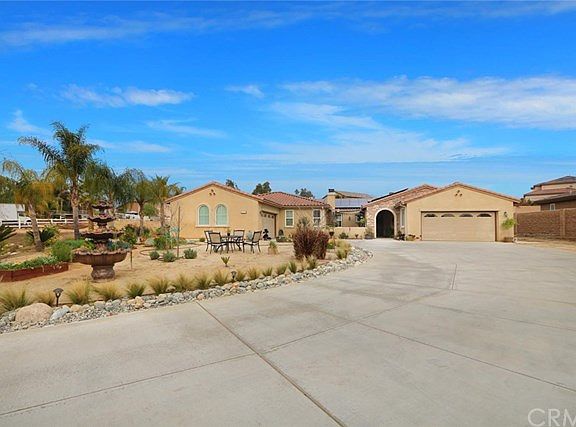 STOP DREAMING AND START LIVING. Enter a world that is alluring & captivating in this STUNNING TURNKEY SINGLE STORY in Bridle Creek. Immaculate equestrian zoned 1.89 acre property will not disappoint! Outdoor Courtyard with 1 of 5 fireplaces welcome's you home! 4 bedroom, 3.5 bath, 5 fireplaces: Court Yard, Den, Family room, Living Room, Master Bedroom Over 3700 sq. ft. Gourmet Kitchen w/Granite Counter Tops, built-in Subzero refrigerator, Jennair stainless appliances, double oven, microwave, 5 burner range & dishwasher. Master Suite: equal sized walk in his & her closets, double sided mirrored doors. Large separate walk-in shower, oversized 6 jet tub. Dual sinks & vanity, French Door to the backyard. Built-in speakers in master bedroom & bath wired to master media nook. All bedrooms rooms have walk in closets. 2 bedrooms have French door access outside. 9' ceilings, Solar 5kw PV system paid for. Dual zone HVAC w/smart thermostats from phone app or Alexa, built-in speakers in living, dining and formal areas wired to media nook. Whole house Cat5 and Coaxial. Smart Alarm system, LED Lighting throughout. And that's just the inside. 4 car garage w/overhead storage shelves & racks. Natural creek. Landscape drought tolerant, Total water bill is less than $100 a mo. 18 mature Queen Palms Mature Peach (2) plum (2) pomegranate, lemon, lime, pink grapefruit, naval orange & Valencia orange, 18 variety of trees. Rv & Boat Parking. On a cul -de-sac.