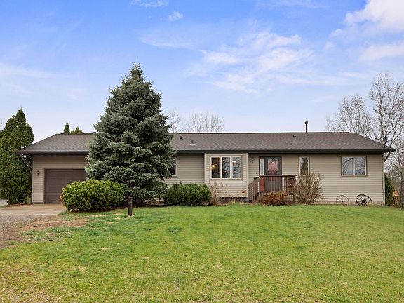 New roof going on main house mid July! Do not miss this gem on 2.5 acres! Are you ready for peaceful living? Here it is! So many updates including Water heater 2024.Furnace, a/c, well pump and tank 2023.New windows and patio door 2020.Washer/dryer, stainless steel appliancs. 30x40 pole shed/12ft walls w/cement floor/floor drain and electricity. Shelving and work benches stay with pole building.12 zone in ground sprinkler w/2 extra water outlets. External 50amp backup generator that powers whole house was added in 2024.Heated-insulated 2 car garage w/window ac unit. Additional 10x18 shed has cement slab next to it w/electrical outlets. Large cobblestone fire pit to enjoy the summer nights.21x12 deck overlooking your acreage. 3 John deer riders w/trailer,snow blower attachment included in sale.Furniture in home and freezer in pantry,fridge in garage all stay if wanted. Monticello schools. Hwy 10 and 94 both just minutes away. Close to restaurants and retail. Don't miss out on this hard to find property!