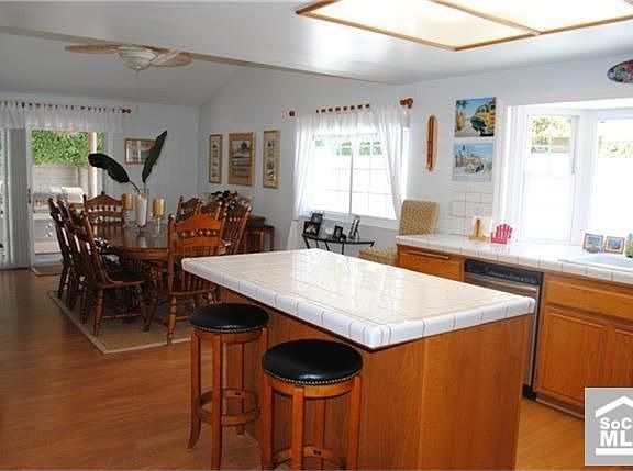 Opportunity Knocks! Home shows like a model Beach Home! Highly desirable open floor plan! Beautifully updated single story home with 3 oversized bedrooms and 2 baths. Featuring beautifully landscaped lined walk- way to double door entry. Newer 25 year composition roof (2005-06). Newer exterior siding and all new dual paned windows and sliders throughout. Very light and bright open kitchen: great for entertaining. Kitchen offers formal dining plus eat in area, Center Island, stainless appliances, medium cherry cabinetry and white tile counters. Very spacious living room with fireplace for cozy evenings at home, high volume ceilings, skylight and sliding glass doors leading to backyard. Bedrooms offer mirrored wardrobes and ceiling fans all through. Second bathroom has been resurfaced. Home is lined with light Pergo Select Oak flooring, and Beach style decor all the way through. Home sits on a cul de sac location, walk to parks, schools and shopping. Short ride to Beach and downtown!