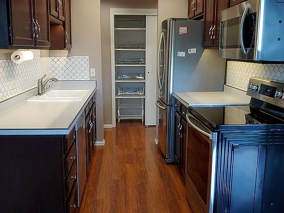 Fully remodeled, top floor condo with an unobstructed view of the greenbelt in Victoria Crossing. This property has everything! It is 800 sq ft, 1 bedroom, 1 bath condo that is close to RTD, Tech Center & Downtown, restaurants, grocery stores, and other services. The condo has been remodeled with an eye for comfort, energy efficiency, and livability. Quality features include: LED recessed lighting, new triple pane windows, EnergyStar sliding patio and front doors, beautiful & functional pellet fireplace insert, 2 DC motor ceiling fans, air conditioning, all near new, stainless appliances in the kitchen and front load laundry equipment in the large laundry room, a gorgeous fully remodeled bathroom with a walk-in shower, custom-made walnut vanity, quartz countertop with an under-mount sink, top quality plumbing fixtures throughout. This condo is what you've been looking for: a lovely home! 1 year lease, or longer, is preferred. Non Smoking Residence: smoking permitted outside only. Application, credit, and background check is required. Refundable Security Deposit is 1 month's rent, paid & cleared prior to move-in. Pets (cat or small - med size dog) are permitted with owner approval. If approved, a refundable pet deposit is required: $250/dog, $150/cat. Resident parking by assigned space, plus plentiful guest parking. Rent includes water & trash service. Tenant responsible for electricity (Xcel), internet service, cable/DirecTV, Phone.