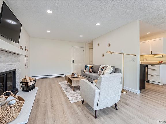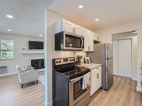 Fully remodeled top-level condo on an end-unit. Enjoy modern living with new luxury vinyl flooring, new paint, new baseboard, new cabinets, new backsplash, new hardware, quartz countertops, and stainless appliances. The refreshed fireplace adds warmth to the living room, while the over-size bedroom boasts a deep walk-in closet. Step outside to your private balcony among the trees, perfect for relaxing. With an in-unit laundry room, air conditioning, and plenty of storage options throughout, this condo ensures convenience and comfort. The bathroom features a new vanity, newer shower, and brushed gold hardware. Located in the Cherry Creek School District, this well-maintained community is quiet. Amenities include a swimming pool right outside, deeded parking, and plenty of guest parking. You'll love the greenbelt, trails, and park right outside your front door, as well as the proximity to shopping, restaurants, public transportation, golf courses, and recreation. Plus, easy access to the airport, Hampden, Buckley, and I-225 makes this the perfect place to call home. Seller financing is also available at half down, half at 4.5% interest for 20 years. Don’t miss this opportunity – schedule your visit today.