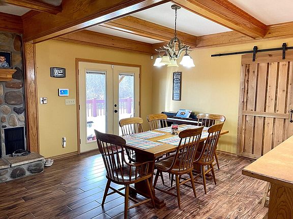 Surrounded by trees! A secluded feel but conveniently located just outside of Neosho, this 4 bedroom, 3 bath A frame style home that sits on 3.2 acres. 3 Bedrooms (including the master) and 2 full baths on the main level. Master has 2 walk-in closets. Updated shower and double vanities. Good use of space with open Kitchen concept, shared with dining area and living room. 4th bedroom, full bath and second living area located in loft area upstairs. Attached 2 car garage plus 24x30 Metal shop. Home is connected to city water plus private well for landscaping.