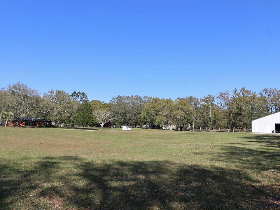 BRING THE HORSES! Concrete block & brick home on 45 gorgeous acres, paved road frontage, 4 pastures, board fenced & x-fenced, gated entry, paved driveway, 3 full RV hookups, many beautiful granddaddy oaks provide lots of shade, aerated catfish pond. 3BR/2BA, 2582sf, brick home with living room, dining room, family room with gas FP, kitchen has Corian counters & overlooks family room, pantry, wood laminate flooring throughout most of the home, large laundry room, screened back porch, attached carport. Plus 4BR/2BA, 2518sf, double-wide mobile with island kitchen, large bonus room could be family room, large laundry room, 2 car carport attached by covered back deck. Both homes have metal roof. 3 stall barn with feed & tack has rollup window coverings to keep horses warm during cold months, riding arena, 60x80 metal shop with 3 bay doors, power, water, septic & concrete floor. All buildings on separate power meter. Back 16 acres wooded. Driveway goes to US129 off back. Watch the horses graze from any porch & enjoy the peaceful tranquility of country life. MUST SEE!Brick home & front 17 acres can be purchased separately for $259,900.
