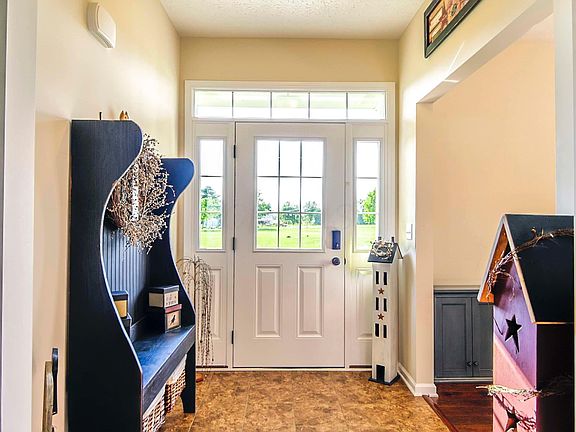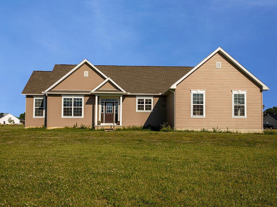 Why build when when you could own this practically new 3 bedroom 2 bath ranch home on over 5 acres!! Open floor plan home, wood floors throughout, gorgeous kitchen, large island, SS appliance including double ovens, and Corian counters. Great room is spacious & bright. Dining area could early be converted to a 4th bedroom or used as office space. There is first floor laundry for convenience. 2 generous sized bedrooms, and full bath on one side of the home, on the opposite side is the owner's suite. The owner's suite features a full bath w/ double sinks, and walk in closet. The full basement perfect for storage or has endless possibilities.