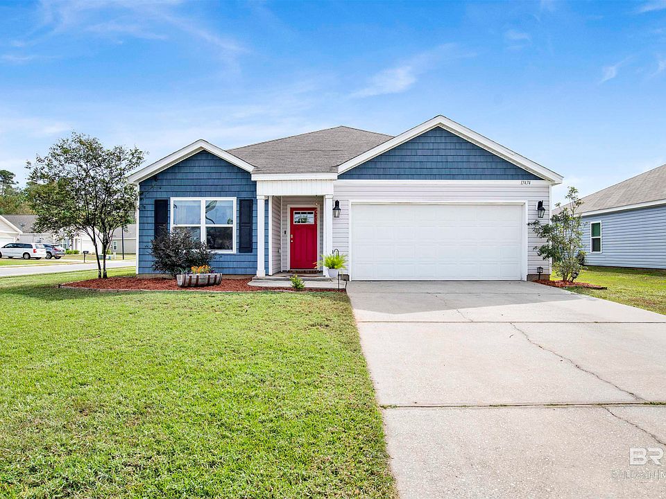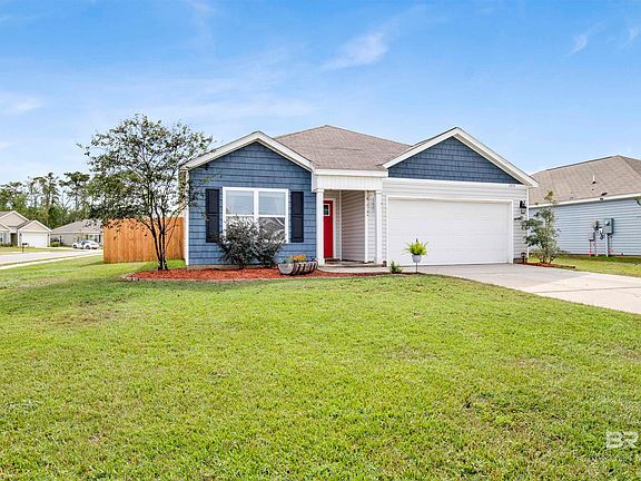Perfect 3-bedroom home just 20 minutes from the beach! Your new home sits on a roomy corner lot with privacy fencing, affording comfortable outdoor space for letting entertaining or personal enjoyment. You'll love the flow of the kitchen with its spacious storage, center island, breakfast bar, and eat-in dining area! And the Primary Suite offers his-her vanities, garden tub, and separate shower. There are ceiling fans throughout the home along with low-maintenance, durable flooring. In quiet Hidden Lakes subdivision, the home sits within 15 minutes of Foley schools, and within easy reach of abundant shopping and dining along Hwy 59. Tanger Outlets, OWA resort, the beaches at Gulf Shores and Orange Beach... there is so much at your fingertips! Schedule your showing today! Buyer to verify all information during due diligence.