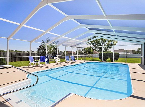 This great 1898 sf home includes a fresh water 16' X 32' pool & screen enclosure ready for your family! Brick home features 3 bedroom 2 baths split floor plan & is situated on a half acre lot featuring a fenced backyard with fruit trees. You'll also find a 12' X 30' covered porch inside the screen enclosure to expand your room for entertaining. This is where you'll spend lots of time! The large master bedroom suite has a separate shower, tub, double vanities & large walk-in closet. The other 2 bedrooms have oversize closets & share a nice bath. The kitchen has wood stained cabinets & an eat-in area. Plus you have a separate formal dining room for hosting family & friends for special occasions. This home is move-in ready with open floor plan, fireplace & a fresh coat of paint. Large storage building in backyard stays. Home is brick and easy to maintain. New roof 2017, AC (outside) replaced internally in 2010. This home is in the Swift Elem school district.