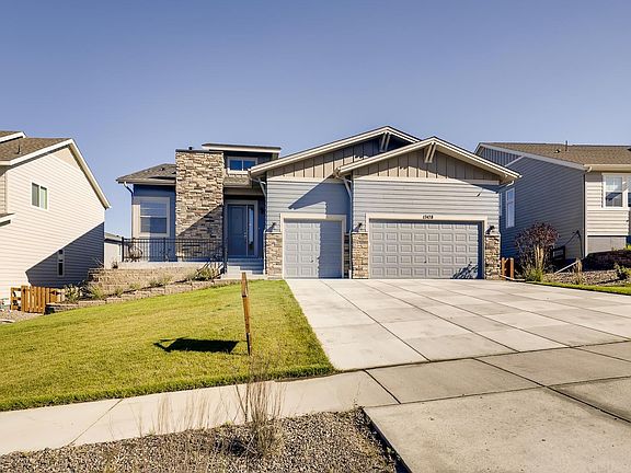 Almost new, ranch plan in beautiful Candelas! Not only is it one of the largest ranches, but the finished basement (family room, wet bar & bath) offers even more room to play, and it still has unfinished space for expansion. It's probably the best price per sq ft in Candelas, and with 4 possible beds, 5 baths, and 5353 sq ft total, you'll be hard pressed to find a re-sale or new-build that's a better value! Warm hand-scraped hardwoods and a soothing interior palate greet you as you enter the home. From the entry the home opens to a large great room with fireplace & surround sound, dining area, and chef's kitchen. The kitchen features a huge island, quartz counters, stainless appliances, gas cooktop, and butler's pantry. The large master suite with 5-piece bath and walk-in closet is a welcome retreat at days end. Two guest beds have ensuite baths. Add closet doors in the study and it converts to a 4th bed. Plenty of parking with a 3 car garage and oversized driveway. Come see it today!