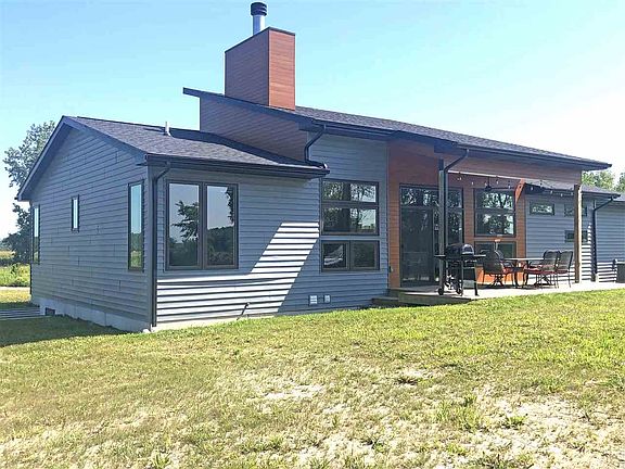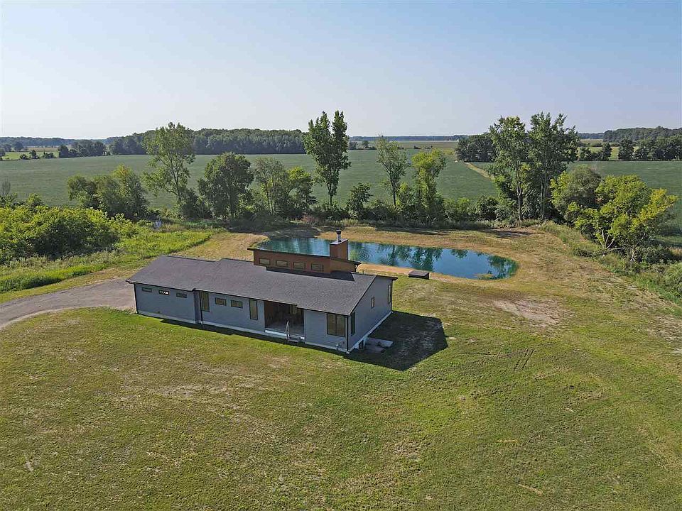 Welcome home! This newly built ranch home sits on over 3 acres and has an amazing pond with beach area. Inside the home features an open floor plan with tons of natural light, cathedral ceilings, luxury vinyl flooring throughout, beautiful wood fireplace, master suite, smart technology, and fiber internet. The spacious kitchen has quartz countertops, a pantry, large island and appliances are included. Downstairs: the basement is ready to be finished with high ceilings, room for a 4th bedroom/office and a plumbed bath area. Tons of storage.