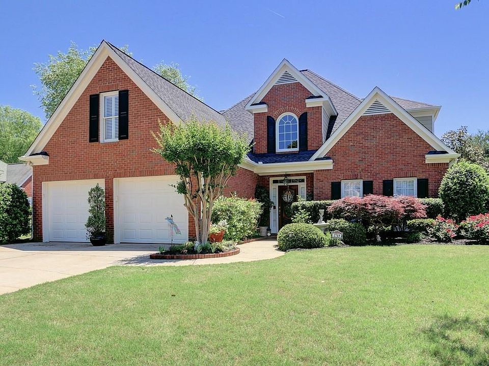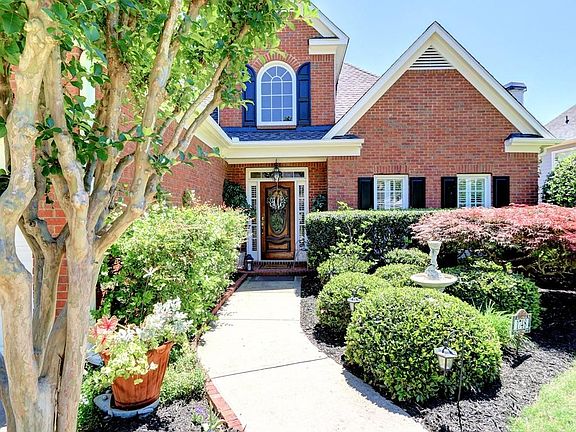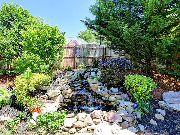 Absolutely fabulous brick front home sited on corner lot w/loads of blooming landscape, waterfall, koi pond already stocked w/fish. Pergola on back patio, veggie garden already planted. Great private fenced backyard. Bamboo hdwd flooring in downstairs living area. 2 master suites, one on main lvl and one upstairs. Massive bonus room/bedroom w/jack & Jill bath on upper level. Newer exterior paint, roof, dishwasher, range, water heater. Benches at koi pond and at driveway remain.