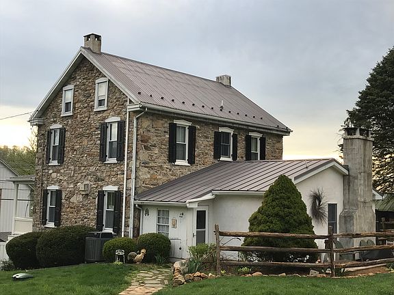 Welcome to this 3 Story Pointed Stone Farmhouse on over 8 acres in beautiful Hereford Township. The house features newly refinished original hardwood floors throughout. 9 ft ceilings with exposed beams and brand new stairs leading up to the second floor. The main floor has a brand new full bathroom, a large modern EI kitchen which boasts a large breakfast bar and a fireplace w energy saving wood burning insert. The sun drenched LR & DR have wide window sills and access to the wonderful wrap around porch from which to enjoy the beautiful views. This 4 bedroom home has a very spacious, bright and airy master bedroom and a large full bath with a whirlpool tub and an oversized tile shower on the second floor, plus bonus storage space on the third level. The ground floor includes a brand new bedroom, bathroom, living room and laundry room. The whole first floor has exposed stone perimeter walls and barn beam framing, barn wood walls and exposed beam ceilings. The home also includes a brand new propane furnace and freshly painted metal roof in 2017. The property includes a large, original stone barn with freshly painted metal roof in 2017. and detached multi-car/RV garage. A brand new energy efficient HVAC system was added in 2014. Schedule a showing today to view this magnificent property.