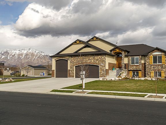 Immaculately maintained corner lot home in quiet Plain City neighborhood. This home is beautiful with tons of upgrades and Luxury details including but not limited to; Gourmet kitchen complete with stainless steel appliances, double ovens, cooktops, walk in pantry, knotty alder cabinetry with specialty under and above cabinet lighting. This home boasts amazing granite throughout including sealed and honed travertine tile floors and deluxe carpet, vaulted ceilings and plantation shutters throughout whole house. High end trowel finishes including bead board and shadow boxes though out the upper level, complete with crown molding in the Master Suite, Master Bath and basement living room with built in lighting for great evening ambience. Every bathroom has built in Heat lamps (250w). Private balcony off of master bedroom. Upper and Lower hall as well as stair well has built in Led lighting in the wall for evening and night time. Two rock fireplaces. Has two HVAC units one for upper floor and one for basement for more manageable climate control between the two floors. Soft water unit. It has a spacious four car garage that is heated that runs the depth of the home with twelve foot garage door for R.V. storage. Outside features a basketball court with a beautiful view of Ben Lomond peak from the main deck and private master deck. This house has everything you could think of and more. Don't miss out on this great opportunity! This is a must see!!