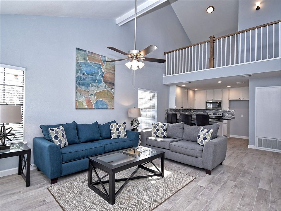 Remodeled and beautiful light filled Brandywine Condominium located in gated community in North Central Austin! Enjoy the family room with vaulted ceiling and fireplace. Open floor plan and 2 master bedrooms, 1 up and 1 down. Each has a full bath. Private patio off family room and downstairs bedroom. Wonderfully updated kitchen, bathrooms, staircase and much more. Loft area study or 2nd living area. Community pool. Quick and easy access to 183, trendy restaurants, entertainment and shopping